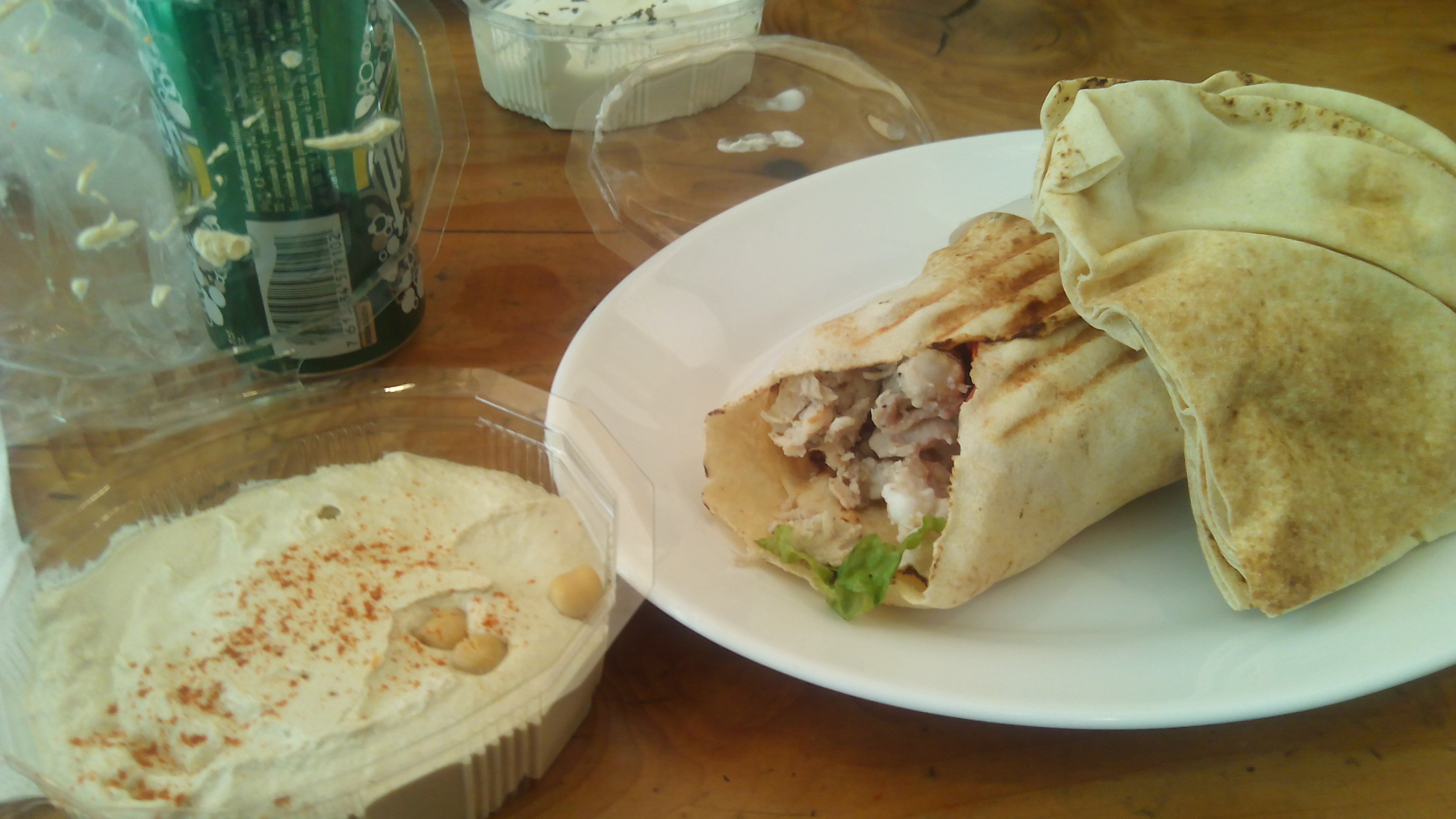 J'y ai pris un shawarma poulet. Le prix est un peu élevé mais reste dans la moyenne pour ce type de cuisine. Ce n'était pas le meilleur shawarma que j'ai mangé (ni le plus mauvais) mais c'est correct si l'on doit manger rapidement à midi. Pas mal de produits à emporter tel que houmous, sandwich, salades...