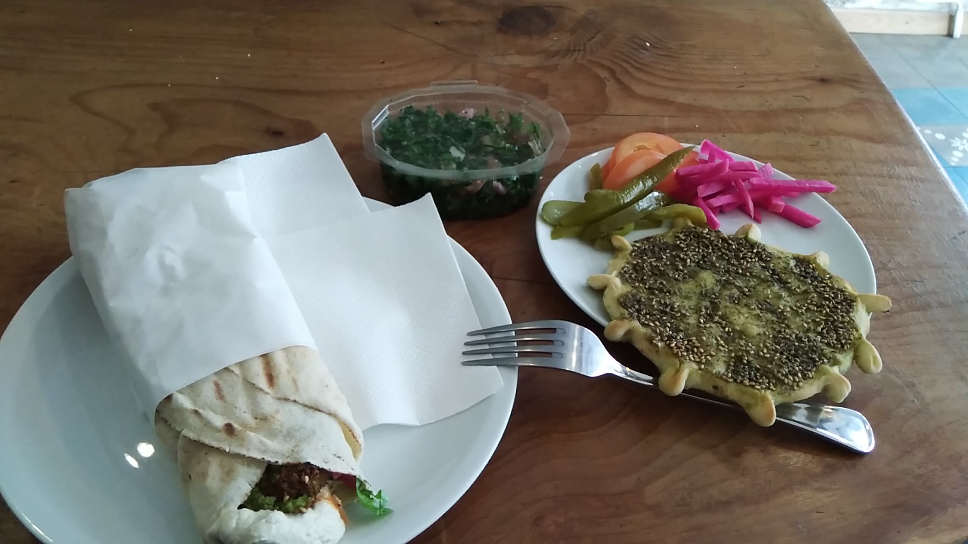 Nous nous sommes régalés, une ratatouille, de très bons falafels et shawarma, j'ai découvert les baklavas c'est excellent.