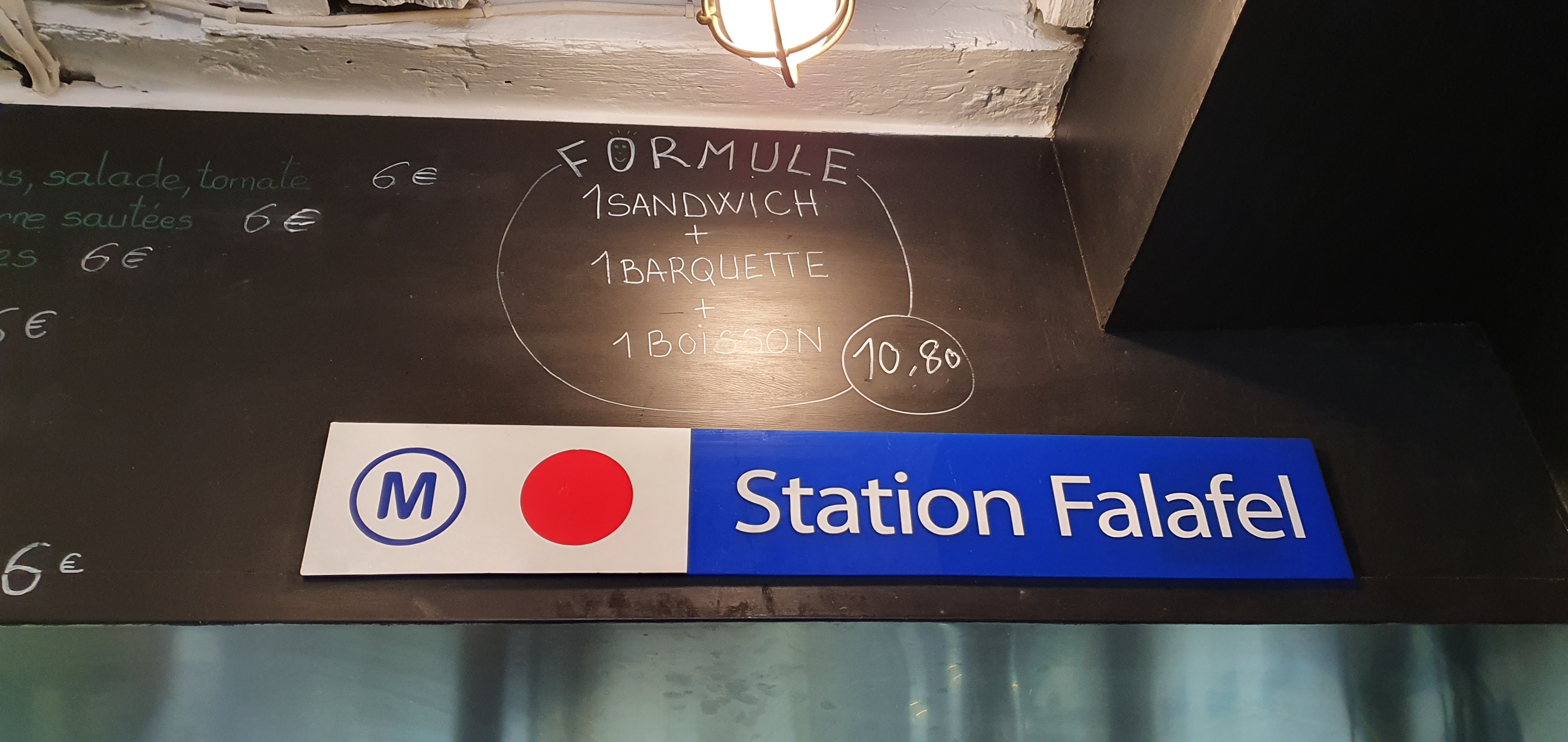 Ce midi j'ai pris un sandwich Falafel extra ( choux fleur ,Patates ...) pour 7e. Très très bon ! Il me rappel les meilleurs falafels d’Allemagne ( le meilleur étant Kimo a Hambourg ). Je recommande