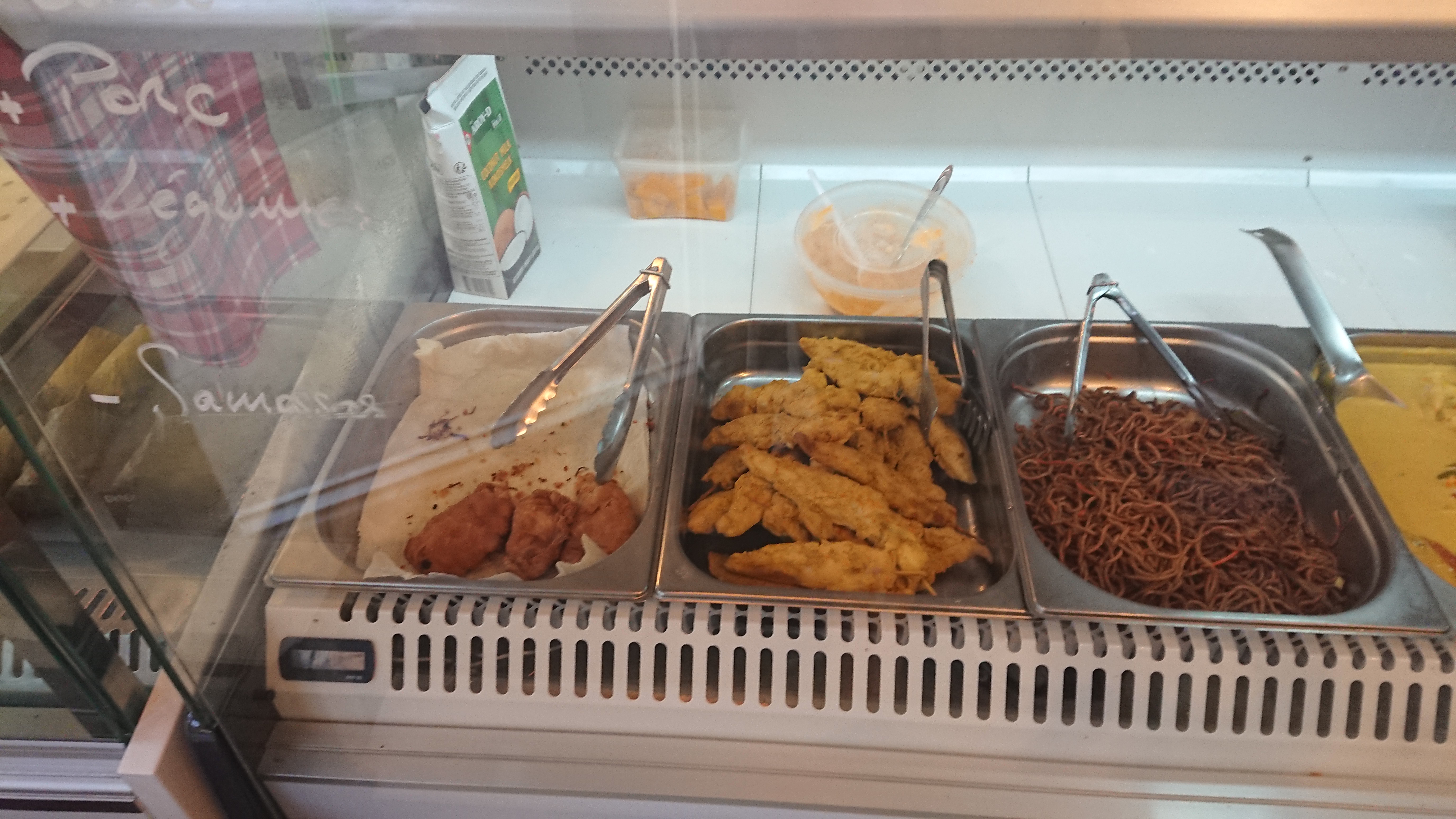 Je suis passé samedi midi, elle m a pris pour un américain 21 euros pour 4 samoussas légumes,, une barquette de riz cantonais et une barquette de pâtes thaï. Bon mais beaucoup beaucoup beaucoup beaucoup trop cher. Prix affiché sur les samoussas mais aucun prix sur les pâtes, la vendeuse fait le prix sur la calculatrice alors qu il ya une balance devant elle qui permet de le faire.... J ai vraiment l impression de mettre fait arnaquer !!!