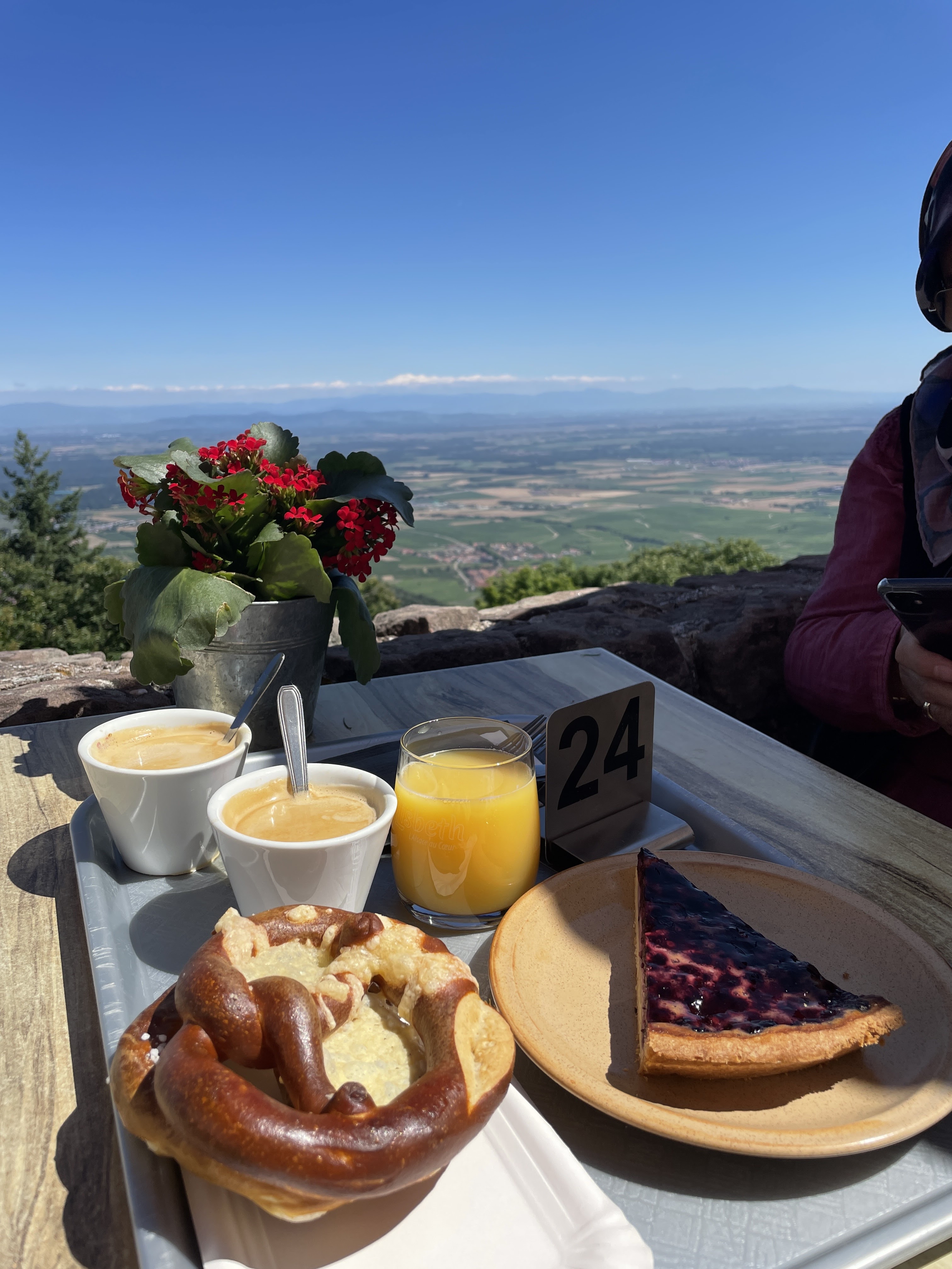 Sympathique endroit avec une vue superbe ! Café et petits gâteaux spéciaux, ce qu’il faut pour profiter de la vue alsacienne. Mais beaucoup de monde donc la queue pour commander fait refroidir…