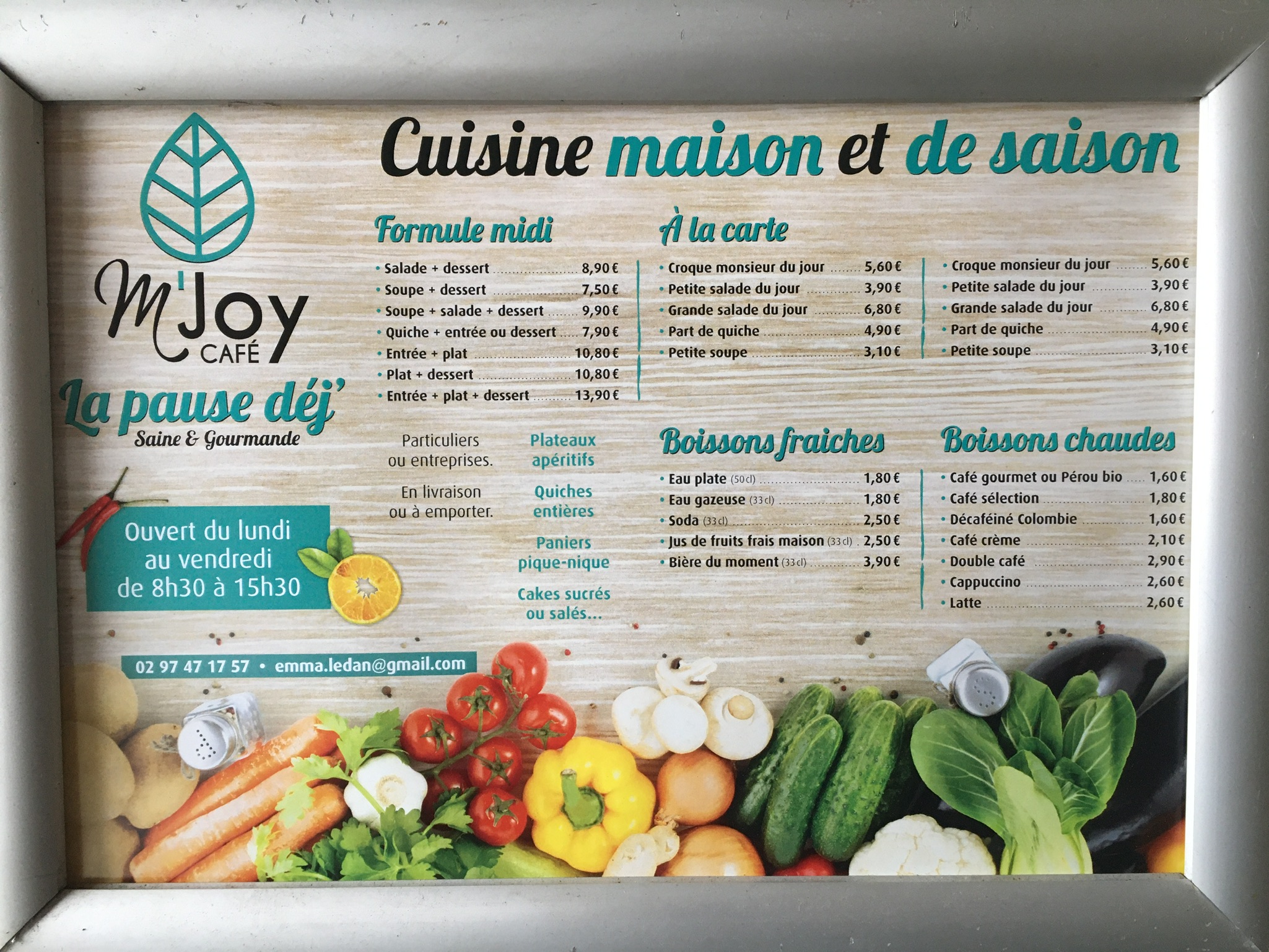 Je recommande à 3000 % !!! J'adore aller chez m Joy! La cuisine est saine et variée avec des produits frais. Une ambiance calme qui vous permet travailler en mangeant comme moi ! l'accueil d'Emmanuelle est tellement chaleureux. Allez-y !